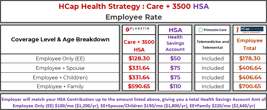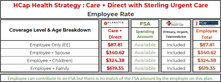 By combining Sterling Urgent Care Clinics and Planstin’s Care you receive your care at $0 cost with your deductible waived. Procedures that can be accomplished at Sterling Medical Clinic will are at $0 cost to you. Care outside of Sterling Medical Clinics can also be accomplished at $0 cost to you through using Planstin’s Care Coordination Team. Emergency Room and Emergency Transport will be applied to your deductible and max out of pocket of this plan. Affordable, comprehensive insurance coverage is here!