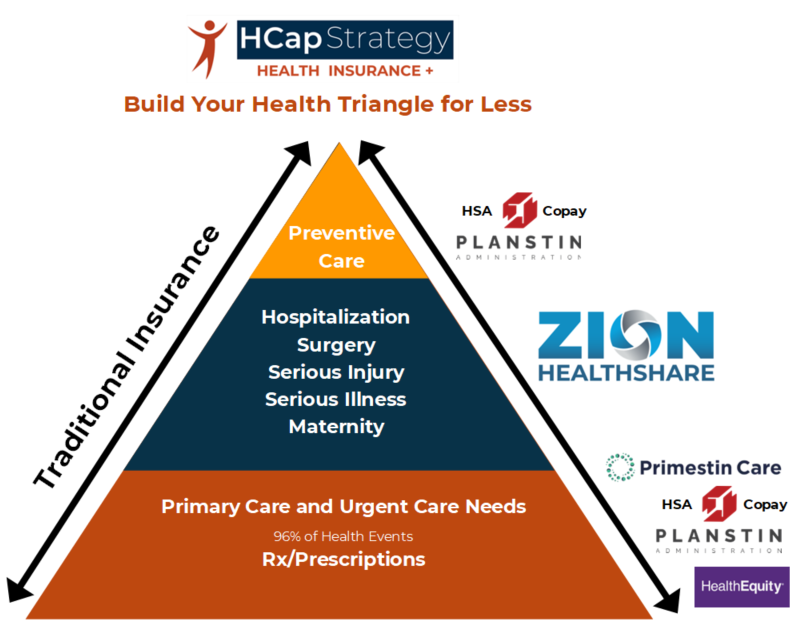 Pairing with Zion HealthShare means no deductible to meet, rather for any qualifying expense (see Zion HealthShare member guidelines), you pay the first $1K (known as your Initial Unshareable Amount or IUA) of qualifying medical events and the HealthShare pays the rest. After you pay 3 IUAs, in a 12 month period, any other major event over $500 is paid by Zion HealthShare w/o requiring another $1K IUA. More money can go to HSA in HSA Plan or a Copay plan can be chosen. All Preventive is care 100% covered. Telemedicine is free. Rx Discount..